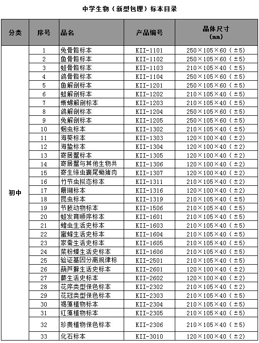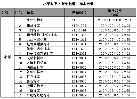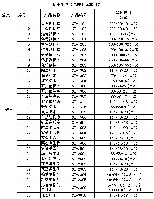 中小學(xué)標(biāo)準(zhǔn)配備系列包埋標(biāo)本涵蓋了國家中小學(xué)標(biāo)準(zhǔn)配備標(biāo)本要求的所有標(biāo)本品種,包括植物外形、植物生活史、植物結(jié)構(gòu)、動物外形、動物生活史、動物結(jié)構(gòu)、動物骨骼、動物解剖,礦物等標(biāo)本產(chǎn)品。產(chǎn)品符合國家教育部行業(yè)標(biāo)準(zhǔn)、企業(yè)標(biāo)準(zhǔn)、以及行業(yè)通行的安全標(biāo)準(zhǔn),與教學(xué)大綱緊密配套,是中小學(xué)自然生物課堂的直觀教材和先進(jìn)教學(xué)用具。