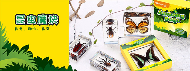 昆蟲魔塊系列產(chǎn)品,是由昆蟲包埋標(biāo)本配套觀察工具組成。標(biāo)本晶瑩通透、精致小巧,昆蟲自然真實(shí)、栩栩如生,激發(fā)孩子的無(wú)限好奇。通過(guò)對(duì)昆蟲標(biāo)本的觀察、認(rèn)知,培養(yǎng)孩子的興趣愛好、觀察能力和探索能力。