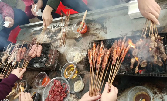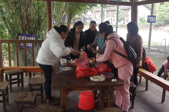 10:30分,我們正式抵達(dá)目的地“竹泉島山莊”,大家紛紛參與到午餐的準(zhǔn)備活動中,生火、穿菜、刷油、配料、烤串……,大家紛紛施展各自拿手絕活,忙得不亦樂乎,不一會大家親手烤制的肉串就飄出陣陣誘人的香氣。太陽很應(yīng)景在此刻從云層中鉆出,金色的光芒透過樹蔭照在每個朝氣蓬勃的笑臉上。